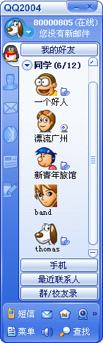 QQ 2004的界面UI设计已不仅仅只停留在精细和华丽的层面上,而是更多的注重了用户使用习惯,从用户角度出发进行交互设计。QQ 2004支持聊天界面定制DIY,你可以亲自设定你的独有界面。主界面创造性的设计了“最近联系人”的人性化功能,独创的立体头像也为界面增色不少。