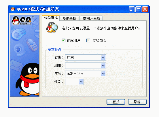 QQ 2004采用了自由组合的查找方式,为你提供最为强大完备的查找功能。省份、城市、年龄、性别、是否在线、是否有摄像头……众多的条件供您自由组合,任意搭配。想查找“深圳22岁有摄像头的在线mm”吗?QQ 2004为你轻松实现!