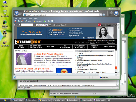 在Extremetech的测试系统上,DWM运行动用了虚拟内存(那个系统可是有1GB物理内存),虚拟内存的调用也使得系统暂时响应迟缓。Longhorn发布之后,64位处理器以及2GB内存可能成为主流配置,不过微软需要在Longhorn的胃口上下一番工夫,不能让长角牛如此贪吃。