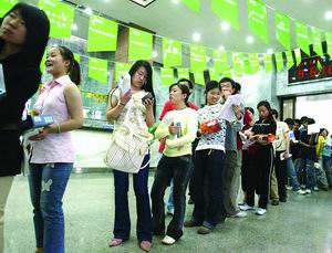网通停发小灵通包月,引来众多抢办者(本报记者 赵勇 摄)