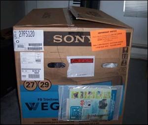 这是他们收到的索尼彩电。是通过DHL敦豪速递公司送来的。
