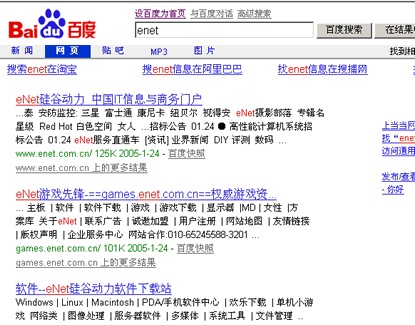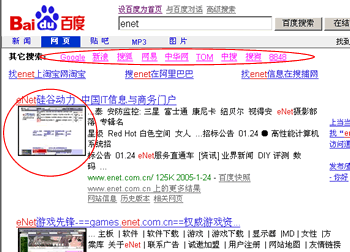 2005年1月1日,8848公司推出一款名为MySearch的搜索工具。该工具安装后,会篡改搜索引擎的搜索结果,在页面上方加入国内各大搜索引擎的链接,并在搜索到的某些页面前加一张缩微图。此插件安装后,在电脑上找不到任何有关MySearch的东西,也就是说,此插件只能安装,不可以卸载!下图是安装插件前后搜索结果的对比。