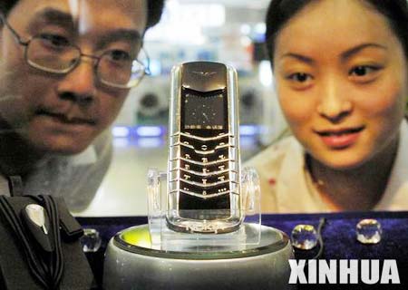 昨日,大连某大型百货商场的柜台上,摆放着一款高档手机。在柜台内幽蓝的灯光下,很多顾客起初都以为这是一件精雕细刻的艺术品。而当人们看到价签上17.75万元的标价后,则发出阵阵惊叹,随后俯身细瞧这件极尽奢华的通讯工具。
