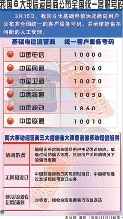 6大基础电信运营商昨天共同出台电话卡余额问题解决办法,用户关心的电话卡余额问题4月将得到妥善解决。