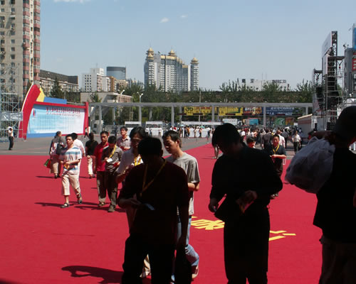 会场内人来人往,红地毯更是把会议衬托的热闹非凡。