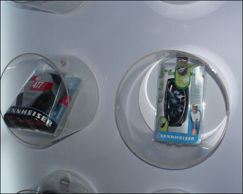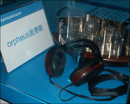 在体验中心,还能目睹到全球限量300付的奥费斯耳机,价值人民币199999元,真是天价啊,同时展出的还有森海塞尔最新的耳机产品。