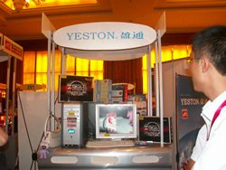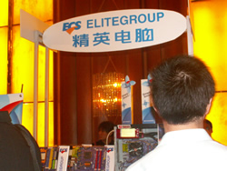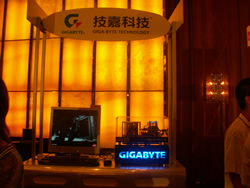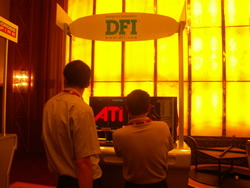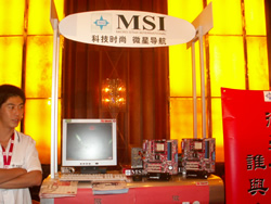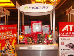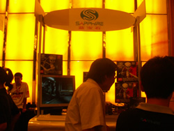下面是各个主板厂商在发布会现场搭的展台,它们都展示了采用RADEON Xpress200芯片组所制造出的最新主板。