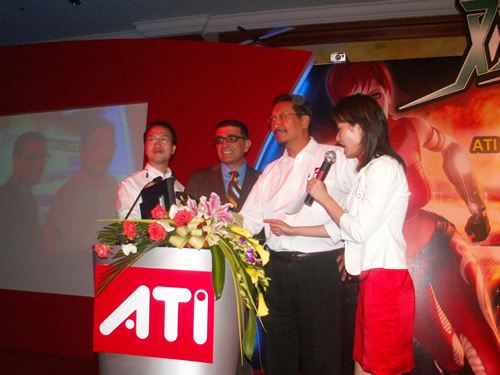 新品发布会上,现场主持还播放了ATI的一段视频,让我们在场的媒体记者深刻感受到了新技术带来的震撼。接着,ATI公司的三位高层一起揭开今天的主角。