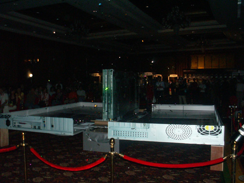 一个巨大的机箱里,有两块“显卡”,它们在一起组成了著名的Cross fire平台。