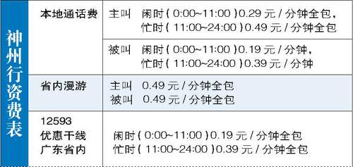 广州移动的人士表示,与以前的资费比较,现在神州行在本地直接拨打国内长途与外地亲友通话,每分钟节省高达1.01元,即付同样话费能多获近3倍通话时间。而如果使用12593优惠干线,拨打全国长途更低至0.19元/分钟。而接听电话资费也大幅下降,由原来的0.29元/分钟下调为0.19元/分钟,降幅达到34%。据介绍,这次广州移动调整神州行的资费,范围涵盖了本地、长途话费。