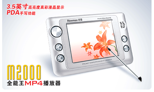 现在MP4市场已经基本被国内的纽曼、蓝魔、爱国者、微星和爱可视等几家大的厂商所占领,在中低端的MP4产品上无非就是听歌看电影,很难有什么特别大的技术突破,毕竟受到了成本的影响大,而一些高端的MP4产品无非就是在拼超大高分屏、大容量存储、高容量电池等。不过在前一段纽曼发布会上他们的几款新型产品让用户眼前一亮!在这次发布会上纽曼推出了几款高端MP4产品,其中M2000和M3000是现今市面功能最强大、性价比最高的MP4之一。如果说在手机中除了传统的消费级手机还有智能手机,那么这两款产品觉得称德上是MP4类产品中的智能MP4了!