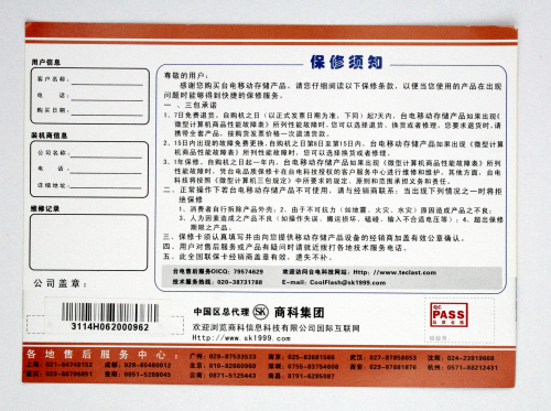 台电晶彩系列U盘提供一年包换服务,同时台电所有产品均支持全国联保,一年质保服务。