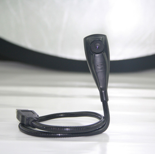 熟悉的外包装里面是非常独特的外型,整个MK13就像一条独眼蛇,USB接头连着修长的蛇身,蛇身可以随意弯曲,可以随意变换造型、变换角度,不但方便视频聊天,而且可以随意摆弄自己喜爱的造型,个性非凡,蛇身连接的是圆方形镜头,千姿百态,酷劲十足!独特的造型,无需另外的USB线联接,是笔记本用户用来视频聊天的最佳伴侣。