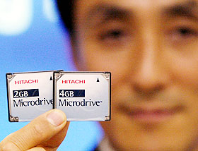日立环球储存科技公司(Hitachi Global Storage Technologies)昨日在东京展示了该公司最新的4GB和2GB微型硬盘(Microdrive)。