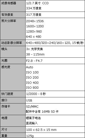 电池方面京瓷Finecam SL300R采用的是锂离子电池,存储卡为SD格式。京瓷公司表示,这个月该产品就可以在日本国内上市,上市价格折合人民币3150元。以下为京瓷Finecam SL300R的主要性能列表。