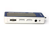 不大的机身,分布在两侧和正面总共有8个按键和一个类似鼠标滚轮的三向导航键,还有3接口!但一切安排的井然有序,也许是因为每个按键各司其职,在使用的时候不但没有繁乱的感觉,反而感觉操控自如。机身的一侧是三向导航键盘,A-B复读键,删除键,外接麦克接口,和内置麦克.在机身的正面,播放停止键,音量调节键,还有录音键。在机身的另一侧是,耳机接口还有USB连线接口,锁定开关和模式选择。