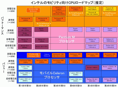 目前,英特尔已经计划在Banias之后,按照Dothan、Jonah、Merom、Gilo的顺序,推出新处理器核心,与此同时芯片组也将以同样的步调向前发展。这是因为,英特尔并不是将移动处理器当作单独的产品,而是将它和芯片组、以及无线LAN作为一个整体,命名为 “迅驰移动计算技术”,来进行市场定位和推广的。