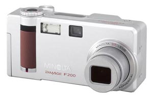 日本美能达公司今年也隆重推出了新款数码相机??DiMAGE F200,可以说是F100的接替者。这款数码相机的外形美观大方,拥有400万像素,其高级自动功能使拍摄操作更加简便。这款独特的数码相机不仅能捕捉静止图像,还可进行数码录音和摄像,所以说美能达的DiMAGE F200是一款功能强大、易于操作的数码相机。这款数码相机的市场价位在3300元左右,在一些城市同样可以以低于这个价位的价格买到这款机器,比松下的LC43略微的贵一点有限。