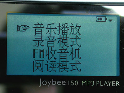 因为提供的功能很多,所以在开机以后是采用主菜单的选取方式来实现想要的功能。其中包括了播放音乐、录音、FM收音机和文本阅读等选择,操作起来非常方便。