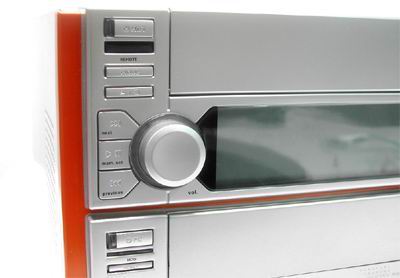 MEGA 651前面板被分为上下两部分,上面是Hi-Fi中心,一个冷光LCD显示屏,一个旋钮,还有部分功能型按钮。在关闭计算机的情况下,Hi-Fi中心可以通过最上面的开关打开。这个时候打开计算机电源,Hi-Fi中心自动关闭,当然Hi-Fi功能也可以通过软件在操作系统中打开。另外这款产品还有收音模块,可以接收当地FM和AM电台波段,产品附带收音天线以及遥控器。使用遥控器来操作,这种感觉……实是让人感觉到很爽:)。