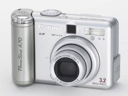CANON POWESHOT A70是A40的升级版,它将有效像素从200万增加到300万,由原来的录制无声动画变成可录制有声动画,再加上小巧的外观,快门优先/光圈优先/程序自动等手动功能和2850元的价格,对于考虑手动功能的用户来说,将是个不错的选择。