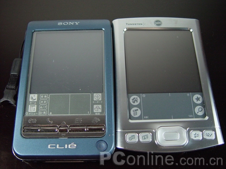 图为:Palm Tungsten E掌上电脑与索尼Clie比较