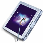产品的基本情况:该款产品是一款双用平板电脑,它采用的是1.0GHz的Intel 迅驰处理器,内存为256MB,40GB的硬盘,采用了COMBO的光驱(光驱外置),10.4英寸的显示屏,分辩率为1024×768。另有56K V.92的调制解调器,10/100 Mbps高速以太网络控制器并集成Intel PRO/Wireless 2100无线网络部件。该款产品的重量为1.45kg,体积为 257×216×25.4mm,电池工作时间为3小时。