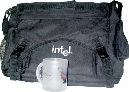据悉该手提包有黑、紫红和白三种颜色,仅仅是限量生产,在专门的商店才可以买到。另外一些Intel的会议也会有发放,所有收入都将捐给慈善机构。