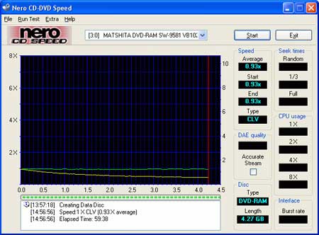 这款来自讯怡的刻录机在进行DVD-R/RW测试的时候均达到了所标称的速度,然而在DVD-RAM的测试上测试软件仅仅能够以1×不到的速度进行模拟刻录,这和标称2×的速度存在着一定的差距。我们在联系了讯怡的工程师之后了解到,目前这款产品由于较新,测试软件不能够很好的兼容它,但是其实际刻录达到标称速度是绝对没有问题的。我们此后索性进行了实际刻录,结果发现这款产品的确能够达到标称的2×的标准。