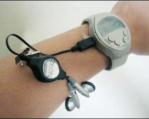 日本公司Thanko的SuperDisk Watch是一款可播放MP3的手表。他支持播放MP3/WMA,同时搭配了128MB存储。电池为150毫安,可以连续播放5个小时,每次充电大约2个小时,而且在连接到PC的USB接口时,可以自动充电,不像有些MP3不能充电还要耗电,是不错的设计.最大传输率为4MB/S。MP3的播放方面,信噪比为90dB,输出功率5mW + 5mW,支持MP3的压缩比为32Kbps~256Kbps。