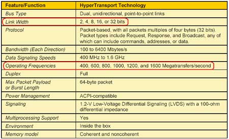 与我们熟悉的传统前端总线可调总线运行频率,位宽固定为64bit所不同的是,HyperTransport总线具备传输位宽、传输频率可调的特征。