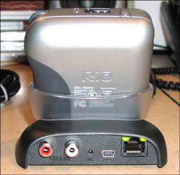 再来看看它的底座,从左数起是音箱音频端口、电源适配器端、USB 2.0端口和网线插口。网线插口?没错,这正是Karma附加的一个功能,通过网线插口连接入局域网,这时使用局域网中的任一台电脑输入此机的IP地址就可以访问Karma。音乐共享的理念,在这台机上又得到了更进一步的阐述:)