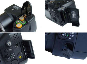 从上图我们可以看到(从上左-顺时针),S7000的电池舱、存储卡插槽、DC IN 5V插座、USB和Video out的输出端子都一如既往地在其原来的位置没有变化,不过与z602不同的是:在继续保留CF卡/IBM小硬盘的同时,用全新的读写速度飞快的XD卡取代原先的SM卡;提供了USB2.0的传输模式,可以和计算机进行更高速的传输。