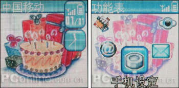 本来在这个价位的手机上能够配置65536色TFT屏幕是令人非常兴奋的,然而这款机的屏幕却并非达到我们所想象的显示效果,不仅在色彩的细腻程度打了折扣,屏幕边缘的“坏点”也成了这台机最令人关注的缺点。这些微小的亮点会不定时,不定点,不定数量地出现,让人非常无奈,当然,由于它们仅是屏幕边缘出没,而且数量也不算多(少则一两个,多则五六个),基本上是不影响你浏览显示内容的。