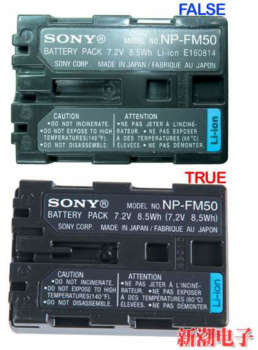 图为:索尼(SONY)NP-FM50电池真假辨别