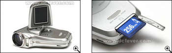 这支手枪形的物体并不是007的秘密武器,它是Sanyo最新推出的三百万像素数码相机DMX-C1。严格点来说,DMX-C1可说是DC与DV之间的产物,因为它除了可以拍摄可以作晒相用的3MP照片,同时也可以MPEG4格式拍摄640×480@30fps无间断立体声影片,配合512MB SD记忆卡使用,大约可以拍摄31分钟的高解像、高流畅度影片,输出至电视甚至大型投影机的效果绝不失礼。DMX-C1预计最快可望本月上市,价格在5000到5300元左右。