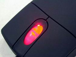 IBM作为全球最出色的笔记本电脑商,在配件方面自然也少不了自己的产品。在笔记本电脑玩家中,IBM的口碑甚至好过微软和罗技!下面这款IBM笔记本电脑光学鼠标在玩家之中有着相当高的普及率,他的表面采用仿皮处理,看起来更像件工艺品。它采用三键设计,中间的滚轮键会发出暗暗的红光,在黑暗的地方看起来相当耀眼(虽然现在很多光电鼠标都采用类似的设计,可真正看起来比较顺眼的却没有多少)。按键的手感比较中性,主观感觉与微软的小鲨鱼没太大区别。在性能则比较一般,如果要用来玩游戏朋友则要考虑一下。另外,由于IBM的彩色LOGO是印在鼠标背上,如果搭配IBM笔记本电脑的话,我们只能用两个字来形容??绝配!