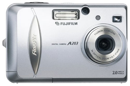 富士A203这款数码相机外型与其加强版富士A303外型极为近似,97×65×36毫米、约重180克(含电池)的机身看上去比富士新人A205S更为轻巧美观。此产品秉承了富士家用机一贯的银白色外观,采用210万像素1/2. 7英寸CCD,配备3倍光学变焦富士龙镜头(F2.8 - F7.0 / F4.8 - F11.6)。与三星digimax 240一样,该相机的快门速度为1/2-1/2000秒,微距仅有10cm;现在富士A203价格连连下滑,但其1580元的市场价不得不使您将国产300万像素的变焦DC划作它的假想敌。