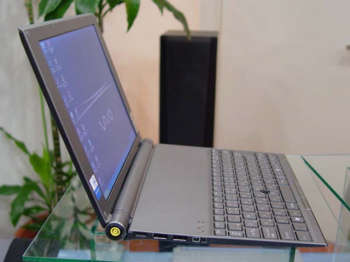 这是采用镁合金外壳B5尺寸的“VAIO NOTE505”的最新机型。505EXTREME的面积为259×208mm,与第一代VAIONOTE505的面积相同,但是厚度只有9.7~21mm,重量比第一代的1.35公斤大大降低,达到了825克,索尼宣称这个指标是世界同等级笔记本中最轻最薄的。