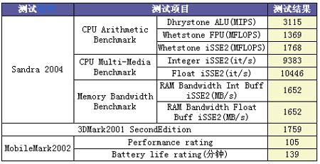 由于X505选用的电池容量相对较小:2220毫安时,所以在实际电池使用时间上还是略为不足,虽然说采用了超低电压版本的Pentium-M 1GHz处理器和内建图形单元的设计,但是在实际的测试中我们发现这款笔记本的实际使用时间相对于业界同类产品而言有明显的差距,全功耗测试巡航时间仅为105分钟(打开无线网卡)而关闭无线网卡后测试结果则为139分钟,两个小时最多的测试结果让我们不禁对这款产品有些失望,看来超轻薄产品在电池问题上依然还需要有所突破。