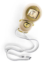 Xelibri 8几乎就是一款名家设计的装饰品,挂在项链上就成为漂亮的坠子,也可以装饰在手腕上,它自然是一款女性专用手机,在这一系列机型中体积最为娇小,外型呈圆润的葫芦状,有钻石诱惑和银色魅力两种色调。为了节省空间去了键盘位置,只在屏幕下面设计了一个四方向键,同Xelibri 3一样通过语音进行拨号。它的声控功能相当优秀,声音还原性强,还加入FM收音机功能,可收听VHF频段。由于体积小,电池容量也相对缩小,只能达到200个小时的待机时间和240分钟的通话时间。