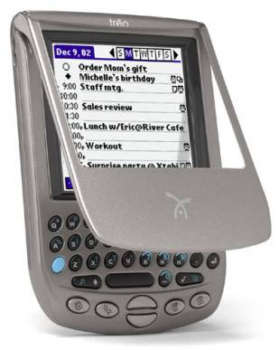 其实提起palm我们就不应该忘记TRG,从一开始TRG就致力于将cf的扩展槽引入palm。并推出了第一款的cf扩展槽的机器TRGpro,还记得那个红色限量版的机器吗?美丽的让人心动。2001年TRG改名为Handera,并推出了Handera330,就是那个16级灰度,320×240分辨率,有着软手写区全屏手写的大机器,还记得看电子书时候它带来的惊喜吗?电池的耐力也不错。此外它首先创造了双扩展,cf和sD.。另外还有一个优点就是全屏的背光,记得晚上使用palm III时,手写区没有背光的烦恼吗?handera再也不会有这样的问题了。