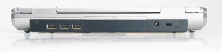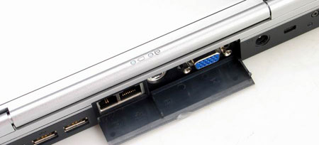 S900的端口主要都设置在机器的后侧,由于机身比较宽大,所以容纳了较丰富的端口。1394端口、无线网卡、音频端口和音频控制器在机器的左侧,右侧是两个Pc卡接口,其余的端口都在后侧。