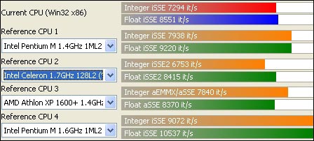 评点:Sisoft Sandra是较为权威的一套测试机器内部性能的软件。CPU Arithmatic Test的测试中,我们看到Pentuim M的CPU的确很强,1.3GHz的CPU已经可以和赛扬1.7GHz的CPU相匹比了,在这里那1MB的二级缓存功不可没。在多媒体性能的测试中,1.3GHz的CPU依然可以和赛扬1.7GHz接近,但是比起Pentuim 4就逊色得多了。S900用的是Hitachi DK23EA40硬盘,在Sisfot的测试中表现一般,只有12100kb/s的成绩,在就近推出的小型硬盘中属于中下水平。在其它的数据中看来,内存和芯片组的表现中规中矩。