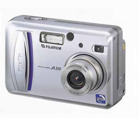 富士公司在相机、影像领域的地位是人所共知的。A310是一款配有“Super CCD HR”、拥有310万有效像素、3倍光学变焦性能的数码相机。体积小,重量轻,适合你单手握持,所有的拍摄需要的参数都可以由A310为你完成,最大的特点是可以输出相当于600万像素的图像,这样就可以冲印15~20寸的照片了。