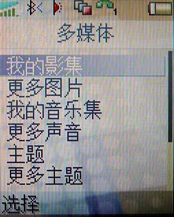此项菜单中也包含的项目与T618相同,在这里我们可以浏览拍过的图片或是上网下载更多的图片,并且还可以查看电话中的音乐、主题。当然,每一项当中都提供了更多的大项,以满足较大胃口的人上网下载音乐或是主题。