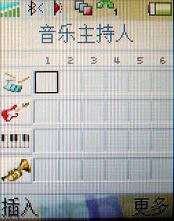 在Z608上我们也可以自编铃声,其音乐主持人一项里拥有较丰富的音乐编辑器,如果你对音乐有所研究或是喜欢玩音乐,那么在这里演练一番也不失一种风格。录音一项也在其中,这一项对记者来讲很是有用。