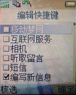 快捷方式的加入给手机操作带来了方便,不过能定义快捷键的手机却少之又少,而Z608就可以,只要我们打开快捷键的选项,将相要加入的菜单选中即能享受到快捷所带来的便利。