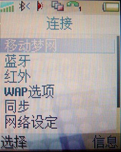 互联网服务在此价位的手机中都具备,在这里不重点说,而是将重点放在连接上。通过连接选项,我们可以设定WAP的参数及网络的参数,同时还可开启蓝牙、红外或是与同步,为接驳一些手机附件带来了方便。
