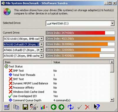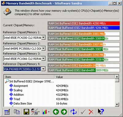 接下来,我们用SiSoftware Sandra进行了测试。此软件属直观测试软件,你可以通过与其他产品的比较来得出,我们测试的产品性能。这款软件不是模拟用户的实际使用情况而是一种纯数据的测试软件,通过数据的测试来表现一个产品的性能好坏,不过这种测试结果会和实际有些出入,但不会很大,其对比图如下,您可以进行最直观的比较。
